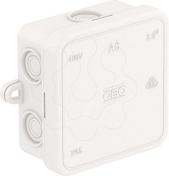 Tipo de proteção IP55, tensão nominal 400 V, secção transversal nominal 2,5 mm², 7 entradas para cabos com diâmetro de 5-14 mm. Tampa de aperto. Dimensões: 75 x 75 x 36,2 mm Dimensões internas: 65 x 65 x 32 mm Por cada 10 caixas 1 ferramenta de corte