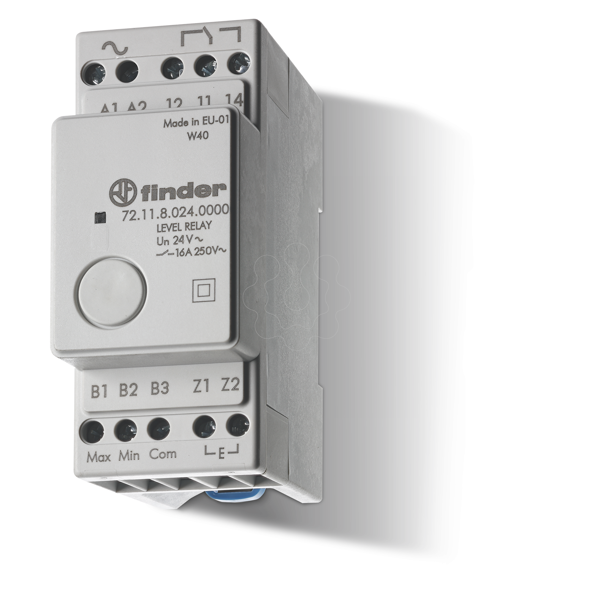 Relé de controle Nr.contato: 1 reversível Material dos contatos: AgCdO (A): 16 Tipo de tensão para atuação: AC Tensão de alimentação de corrente nominal de 50 Hz AC: 125 V. Com braçadeiras destacáveis: não Número de entradas de elétrodos: 3 Sensibilidade ajustável: não Acabamento da conexão elétrica: Terminal de parafuso Máx. tempo de atraso de operação permitido: 7 s. Princípio de medição física: Condutor Grau de proteção: IP 20