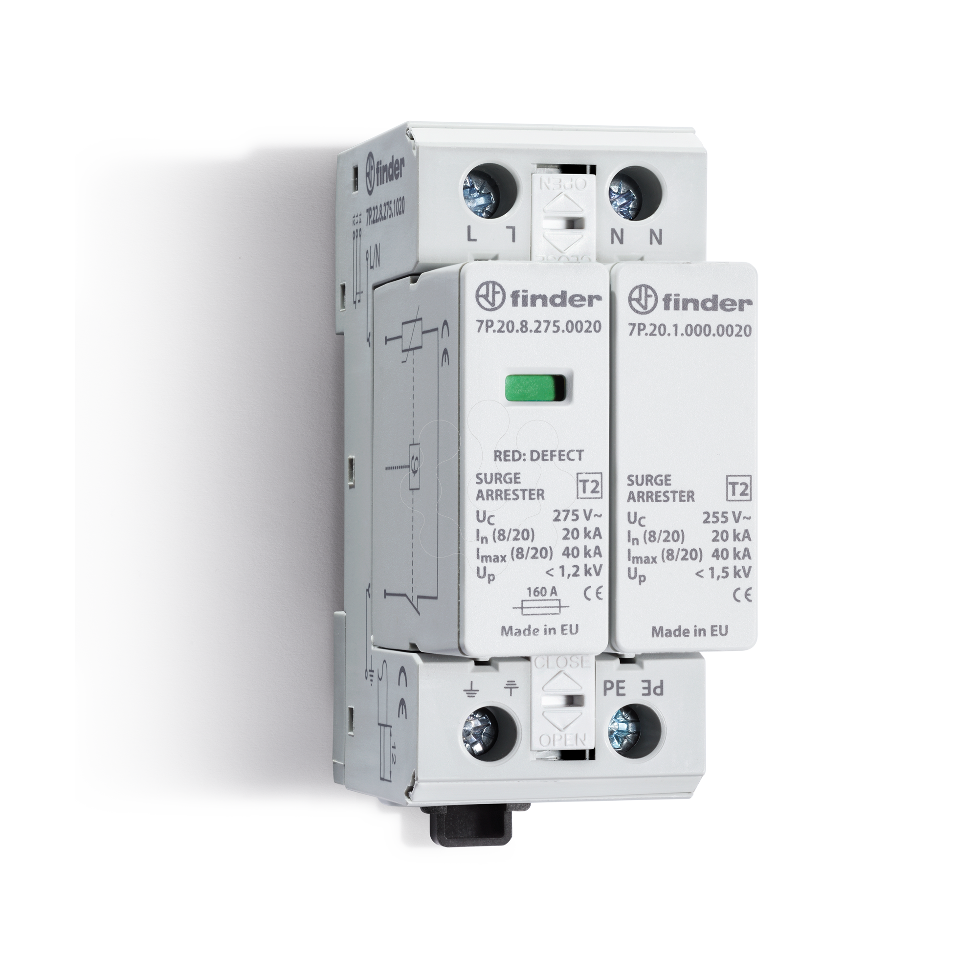 Dispositivo de Proteção contra Surtos Método de montagem: Perfil DIN 35 mm Com contato de sinalização remota: não Número de condutores (Sem aterramento): 2 Tamanho: 2 espaços modulares Tensão máxima contínua AC: 275 V. Corrente de descarga nominal (8/20): 20 kA. Tensão nominal CA: 230 V. Ensaio de categoria tipo 2: sim Nível de proteção L-N: 1.2 kV. Sinalização no nível do dispositivo: Ótico Grau de proteção (IP): IP20 Nível de proteção de tensão N-PE: 1.5 kV. Fusível de backup integrado: não Esquema de ligação DC: não Esquema de ligação TI: não Esquema de ligação TN: não Esquema de ligação TN-C: não Esquema de ligação TN-S: sim Esquema de ligação TT: sim Configuração de outro esquema de ligação: não Esquema de ligação TN-C-S: não Corrente de choque de descarga máxima (8/20): 40 kA. Resistência a curto-circuito (Isccr): 50 kA.