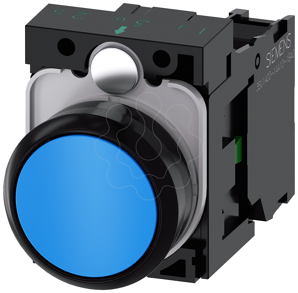 Botão de pressão, 22mm, redondo, plástico, azul, 1NA. botão, 22 mm, redonda, plástico, azul, botão de pressão, plano, tecla com retorno, com suporte 1NA, conexão parafusada Botão de pressão SIRIUS ACT para a comutação e o comando de consumidores elétricos.Sob o nome de marca SIRIUS ACT, a Siemens disponibiliza um portfólio ímpar de aparelhos de comando e sinalização com aprovações de produto mundiais em três séries de design modernas em metal autêntico e robusto e plástico de alta qualidade.O inovador conceito de encaixe simplifica a montagem ao ponto de ser necessária apenas uma mão e nenhuma ferramenta especial. Como orifícios de montagem basta usar furos sem ranhura, pois já se encontra integrada uma proteção total contra torção.Graças ao tipo de proteção continuamente elevado, esses aparelhos robustos são adequados para a indústria e para a utilização no exterior. É inclusivamente possível a limpeza com jato de alta pressão. Nem pó, nem óleos ou lixívias agressivas podem perturbar a operação confiável.Para além da fiação padrão, a maior parte dos aparelhos também pode ser ligada ao comando via PROFINET, AS-Interface ou IO-Link. Isso permite reduzir o trabalho de cablagem, minimizar as fontes de erro e ganhar mais flexibilidade.O configurador online gráfico ajuda confortavelmente na seleção e no pedido de aparelhagens individuais, carcaças e inscrições. Está disponível uma documentação abrangente (p. ex. manual, dados 3D, diagrama de conexão).Versões disponíveis: várias cores, com/sem iluminação, com/sem inscrição, acionamento por encaixe/contacto, diferentes alturas de botão de pressão e aro frontal.Nota: dispositivo completo, remessa incluindo suporte e módulos.SIRIUS ACT - Performance in Action para comando e sinalização. Fáceis de montar, simplesmente robustos, simplesmente perfeitos.