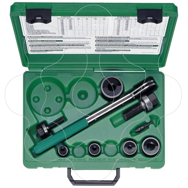50366920 ESTOJO SACA-BOCADOS "Slug Buster" + ROQUETE. Estojo c/ saca-bocados 50366920 Slug Buster® ISO 16 - 40. Estojo completo saca-bocados Greenlee.Inclui roquete, eixos, matrizes e punção, fornecido numa mala.Dimensões: ISO16/20/25/32/40.O sistema Slug-Buster (SB) da Greenlee corta o desperdício, melhorando a longevidade do eixo e tornando o trabalho mais rápido.Os sistemas de saca-bocados da Greenlee garantem sempre um corte limpo sem danos na pintura ou com limalhas.