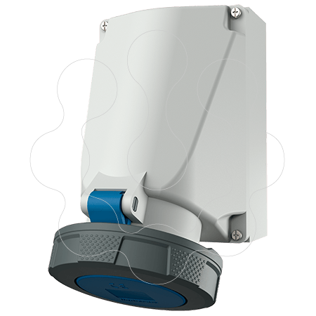 Wall mounted recept., 63A3p 6h230V, IP67. 63A3P 6H230V wall mounted receptacle IP 67 with frame terminal and X-CONTACT