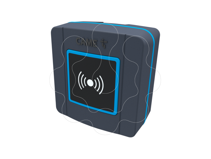 Transponder BUS EXT RFID. SELR1BDG - Seletor de transponder BUS CXN de montagem saliente para cartões, porta-chaves e TAG (protocolo Manchester) com iluminação azul, IP54, 12 - 24 AC - DC. Cor cinzenta RAL7024.