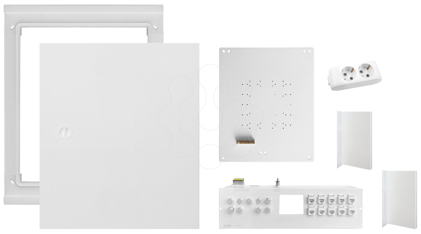 ATI M2 LC EMB 8PC 8CC 2FO BRC. KIT PAINÉL ATI MEGA M2 PARA MONTAGEM EMBUTIDA COM RÉGUA E COM 8 SAÍDAS PAR COBRE 8 SAÍDAS COAXIAL E 2 SAÍDAS PARA FIBRA ÓPTICA BRANCO. Em conformidade com as indicações 3.2.2.2 do manual ITED3 e as indicações 3.3.2.2 do manual ITED4 Para montagem de embutir Fabricado em termoplástico Cor: branco RAL 9010 Porta reversível a 180º. Ventilação por convecção natural. Fecho rotativo. Possibilidade de colocar fechadura com chave - ref.MFC Possibilidade de aquisição do fundo ATI para instalação posterior Kits equipados com os RC CC 2400MHZ e RC FO SC/APC Classe II de isolamento IP40/IK07 Sem halogéneos